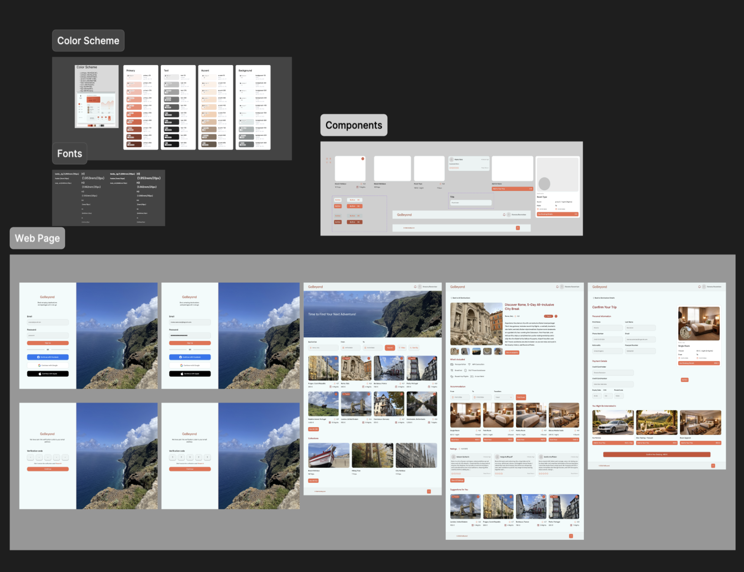 The main goal was to create a visually clean and well-oriented interface by using a consistent color family and font family throughout the site. I worked extensively with variables for colors, typography, buttons, and icons to improve workflow efficiency and maintain design consistency. Reusable components—especially cards for destinations, add-ons, and rooms—were a key focus, allowing the design process to be faster, more precise, and easier to scale.